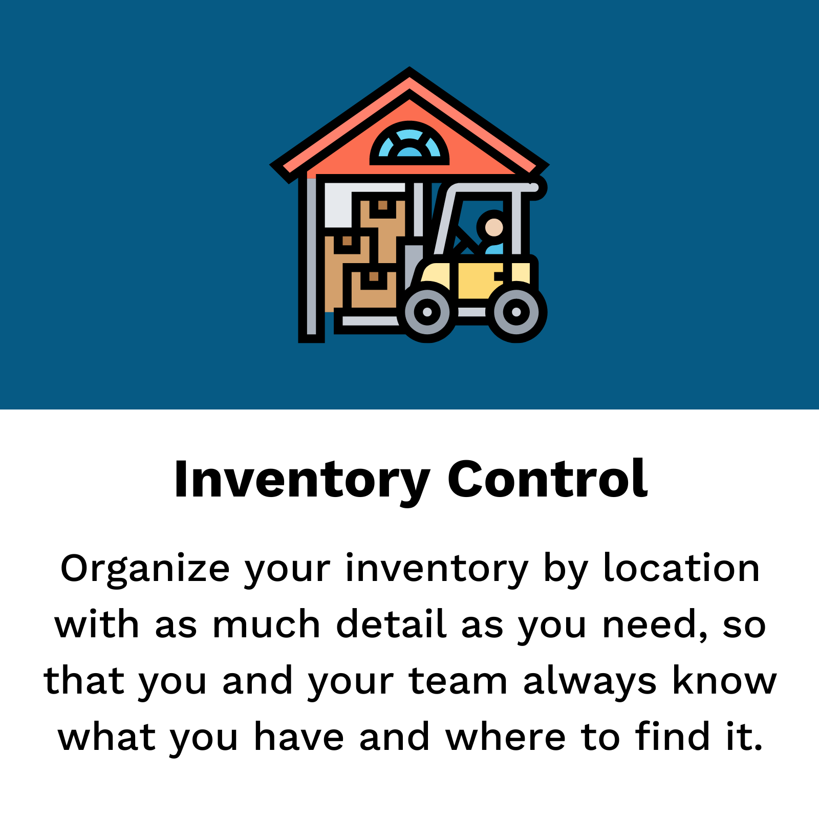 Organize inventory and easily gather materials. Track tools and equipment. Get what you need, when you need it. Know what you have, and where to find it.